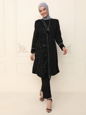 AYŞE MELEK TASARIM Siyah Tunik&Pantolon İkili Abiye Takım