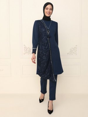 AYŞE MELEK TASARIM İndigo Tunik&Pantolon İkili Abiye Takım