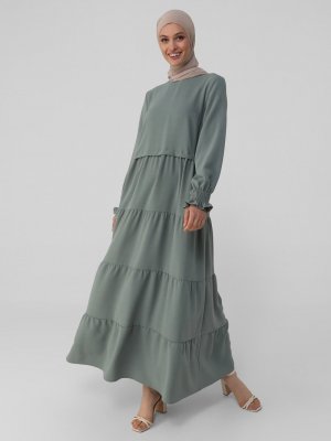 Refka Antik Yeşil Kol Ucu Gipeli Rahat Kesim Aerobin Elbise
