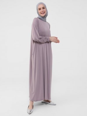 Refka Toz Lila Gizli Cepli Elbise