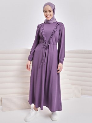 İnşirah Lila Düz Bürümcük Elbise