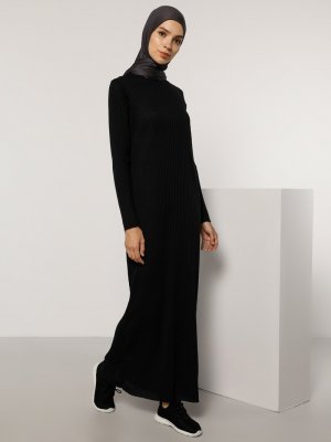 Tavin Siyah Triko Bisiklet Yaka Elbise