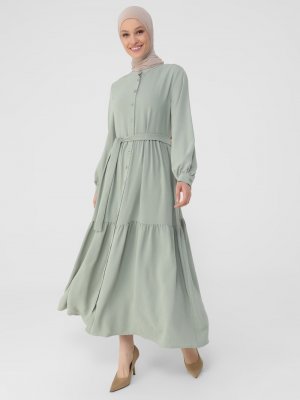 Refka Çağla Yeşili Boydan Düğmeli Aerobin Elbise