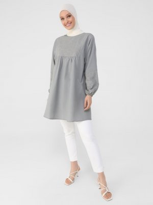 Refka Koyu Gri Nakış Detaylı Salaş Tunik