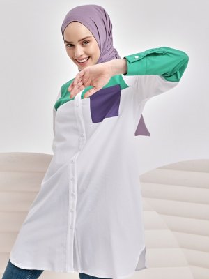 İnşirah Yeşil Beyaz Crush Gömlek