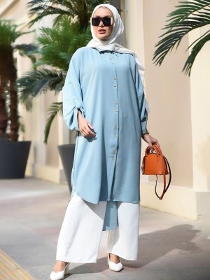 Por La Cara Turkuaz Aerobin Boydan Düğmeli Salaş Tunik