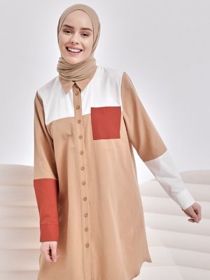 İnşirah Beyaz Camel Crush Gömlek