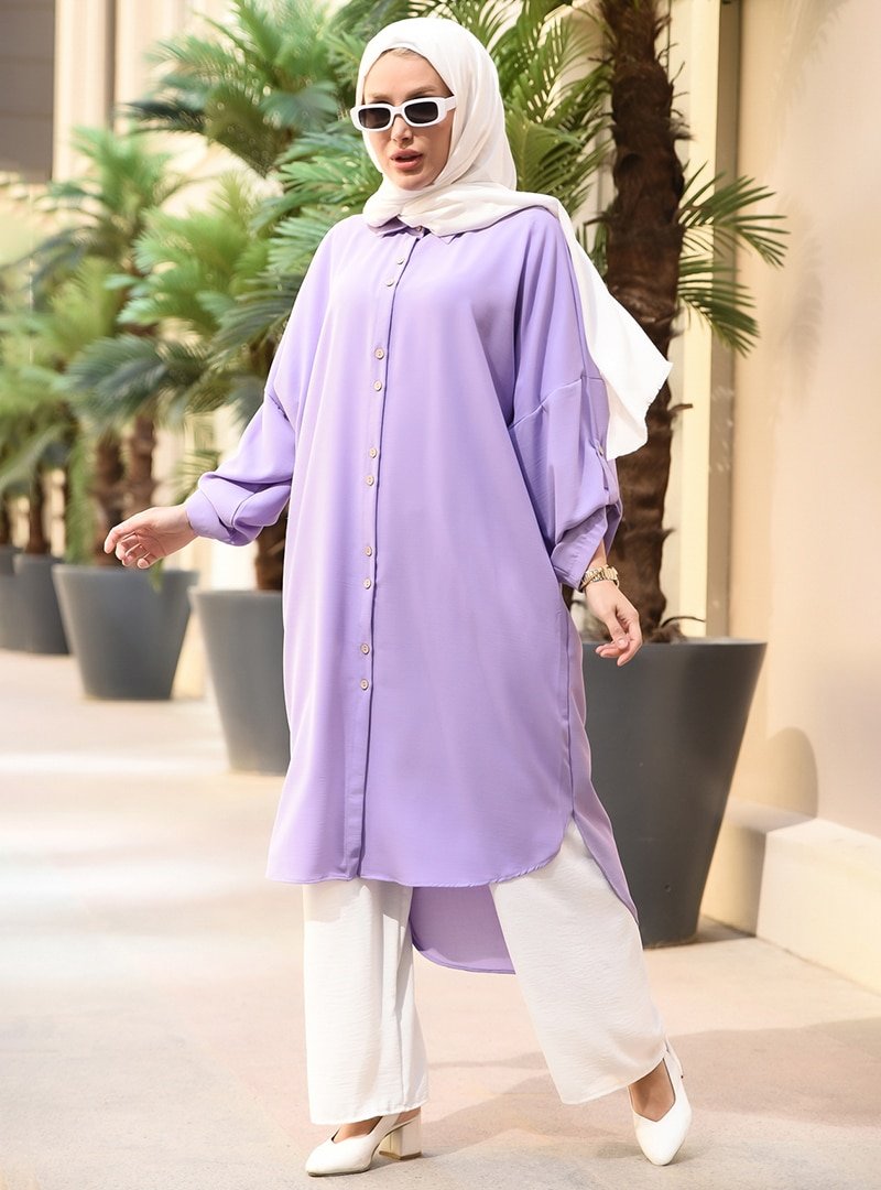 Por La Cara Lila Aerobin Boydan Düğmeli Salaş Tunik