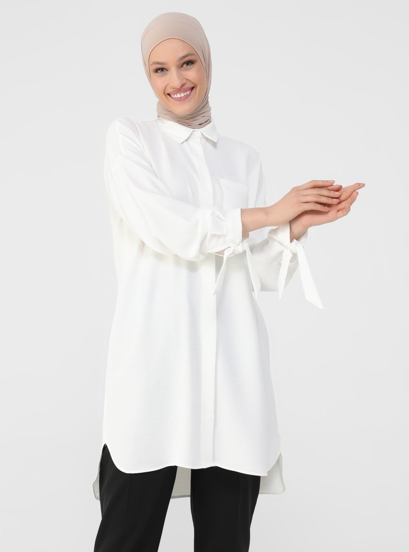 Refka Beyaz Bağlama Detaylı Arkası Uzun Tunik