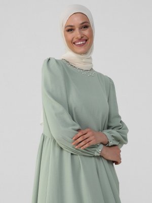 Refka Mint İnci İşlemeli Rahat Kesim Aerobin Elbise