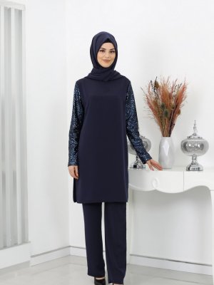 Rana Zenn Lacivert Alt Üst Abiye Takım