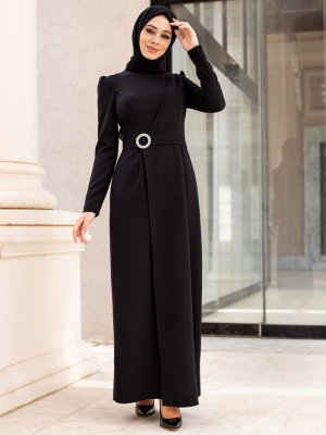 Lavienza Siyah Tokalı Kalem Abiye Elbise