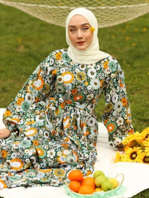 Ceylan Otantik Yeşil Belden Robalı Elbise
