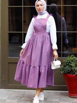 Meqlife Mor Koyu Lila Askı Detaylı Jile Elbise