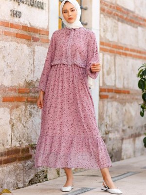 Meqlife Pembe Pudra Verena Şifon Elbise