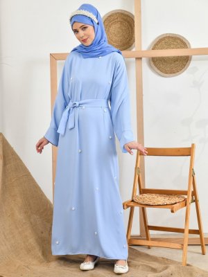 Tuncay Bebe Mavisi İnci Aksesuar Detaylı Elbise