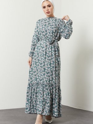 Festmoda Yeşil Papatya Elbise