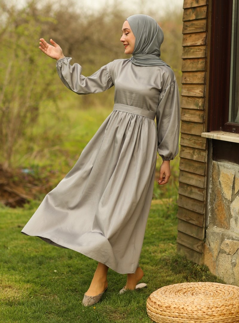 Ceylan Otantik Gri Belden Robalı Elbise