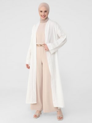 Refka Off White Fistolu Kendi Kumaşından Kemerli Pamuk Ferace
