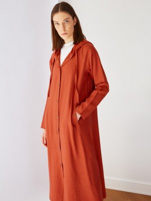 Trendyol Modest Turuncu Kiremit Kapüşonlu Ceket Kap
