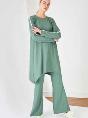 Trendyol Modest Yeşil Bisiklet Yaka Alt Üst Takım