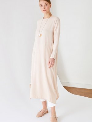 Trendyol Modest Bej Bisiklet Yaka Tunik Elbise