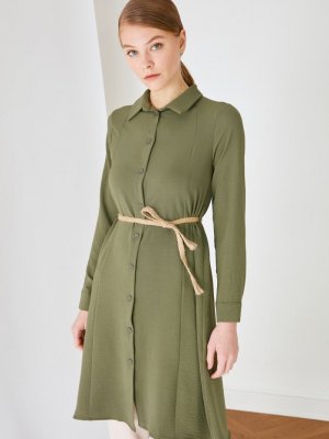 Trendyol Modest Haki Kemer Detaylı Tunik