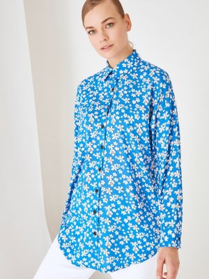 Trendyol Modest Lacivert Gömlek Yaka Tunik