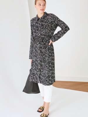 Trendyol Modest Siyah Gömlek Yaka Desenli Tunik Elbise