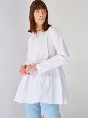 Trendyol Modest Beyaz Bisiklet Yaka Fırfırlı Tunik
