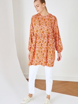 Trendyol Modest Pembe Çiçek Desenli Tunik Elbise