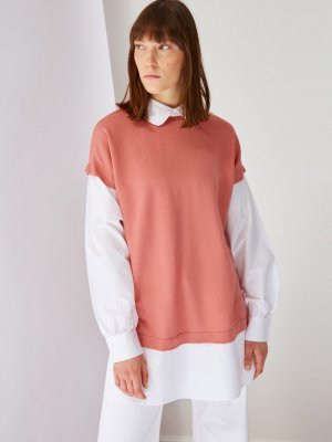 Trendyol Modest Gül Kurusu Örme İçten Gömlek Çıkmalı Tunik