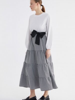 Trendyol Modest Beyaz Bel Bağlama Detaylı Elbise
