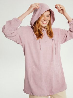 Muni Muni Leylak Keten Görünümlü Kapüşonlu Tunik