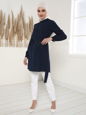 Tavin Lacivert Kemer Detaylı Tunik