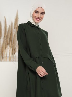 Tavin Haki Boydan Düğmeli Tunik