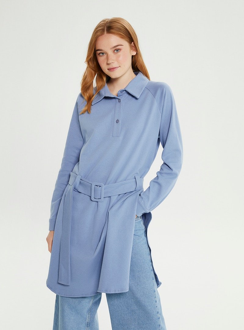 Muni Muni Bebe Mavisi Gömlek Yaka Kemerli Tunik