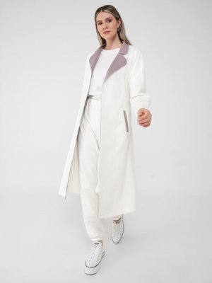 Alia Toz Lila Ekru Büyük Beden Kuşaklı Spor Trençkap