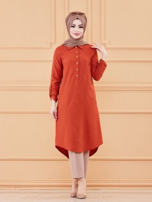 Tofisa Kiremit Düğme Detaylı Tunik