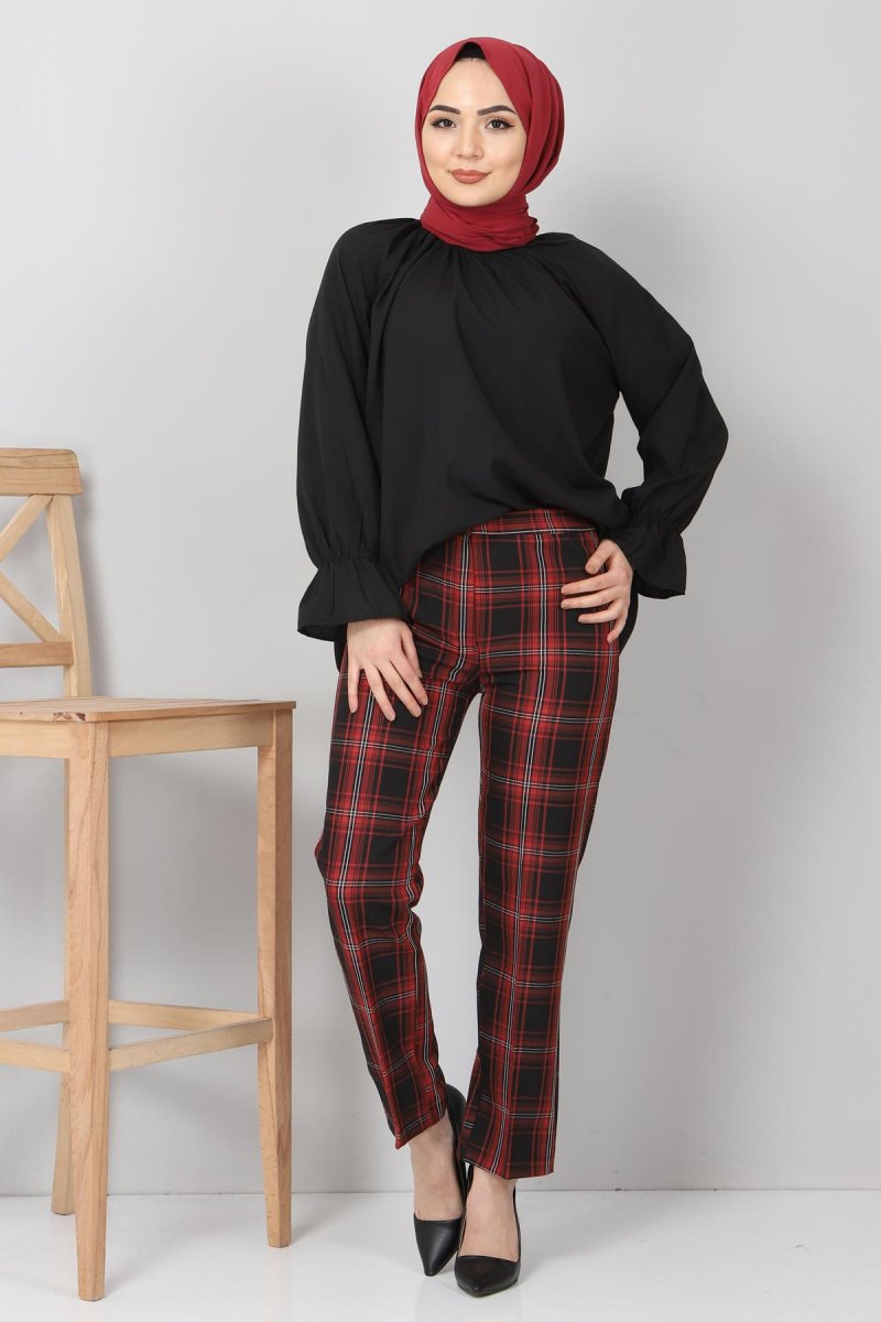 MISSVALLE Bordo Ekoseli Kumaş Pantolon