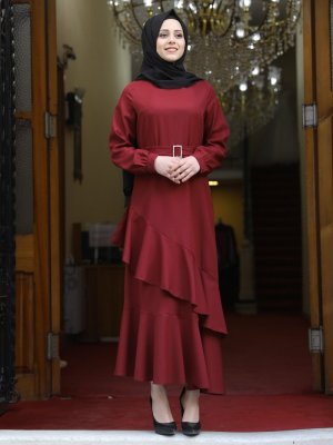 Amine Hüma Bordo Ceylin Abiye Elbise