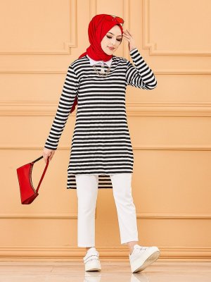 Tofisa Siyah Çizgili Tunik