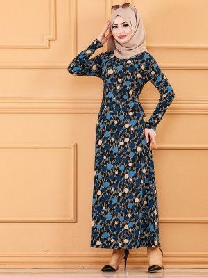 Tofisa İndigo Desenli Elbise