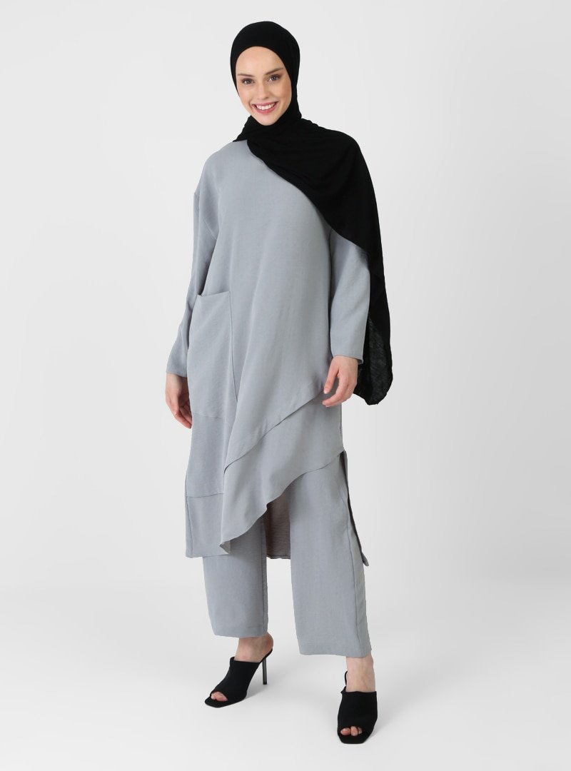 Amine Hüma Gri Karen Tunik&Pantolon İkili Takım