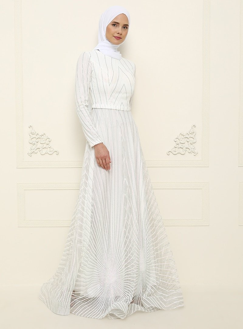 Mileny Beyaz Sim Detaylı Abiye Elbise