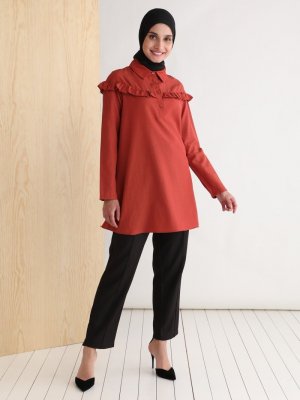 Tavin Kiremit Fırfır Detaylı Tunik
