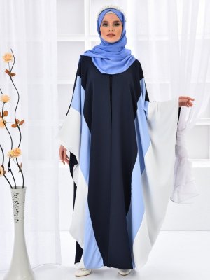 Filizzade Lacivert Üç Renkli Önü Açık Ferace Elbise