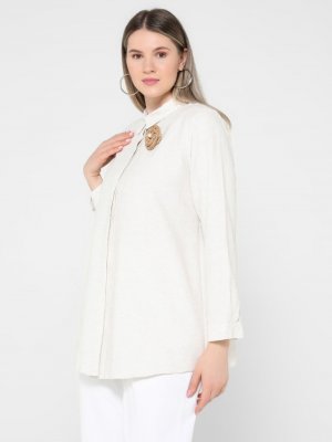 Alia Ekru Büyük Beden Doğal Kumaşlı Gizli Düğmeli Tunik