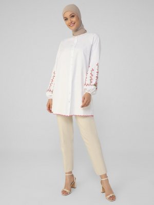 Refka Off White Kolları Nakış Detaylı Tunik