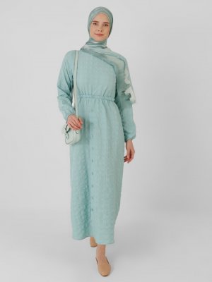 BÜRÜN Mint Beli Lastikli Düğme Detaylı Elbise